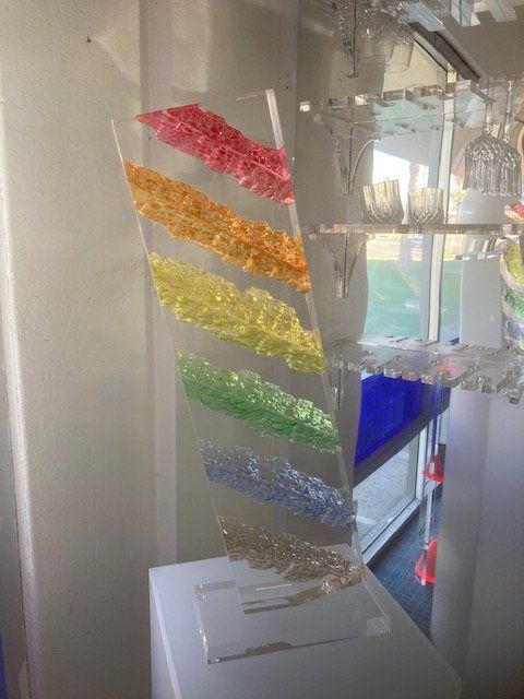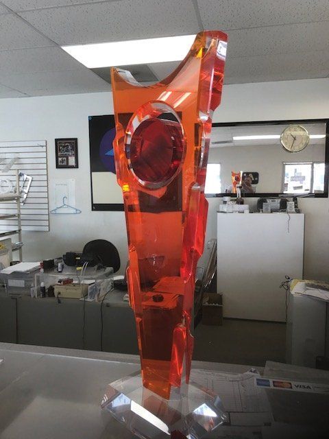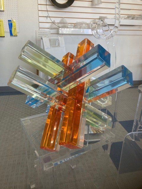 Spotted-glass windows and glass blowing are creative examples of sculpture. However, acrylic plastic can be used to exhibit the same artwork in place of glass. In natural settings, acrylic plastic is less prone to damage from accidents.